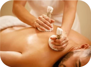 Abhyangam therapy involves full-body massage using warm herbal oils. It promotes relaxation, detoxification, and overall well-being.